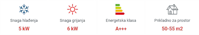- Učinak hlađenja: 5,0kW (0,90 – 6,00) kW